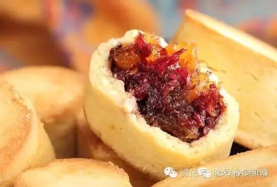 Ils ne paraissent pas aussi beaux que des gâteaux de lune de style cantonais, mais ils ont leurs propres caractéristiques uniques: des gâteaux de lune avec une croûte dure garnis de sucre candi, de morceaux de noix, de graines de citrouille et de peaux de mandarine confites.